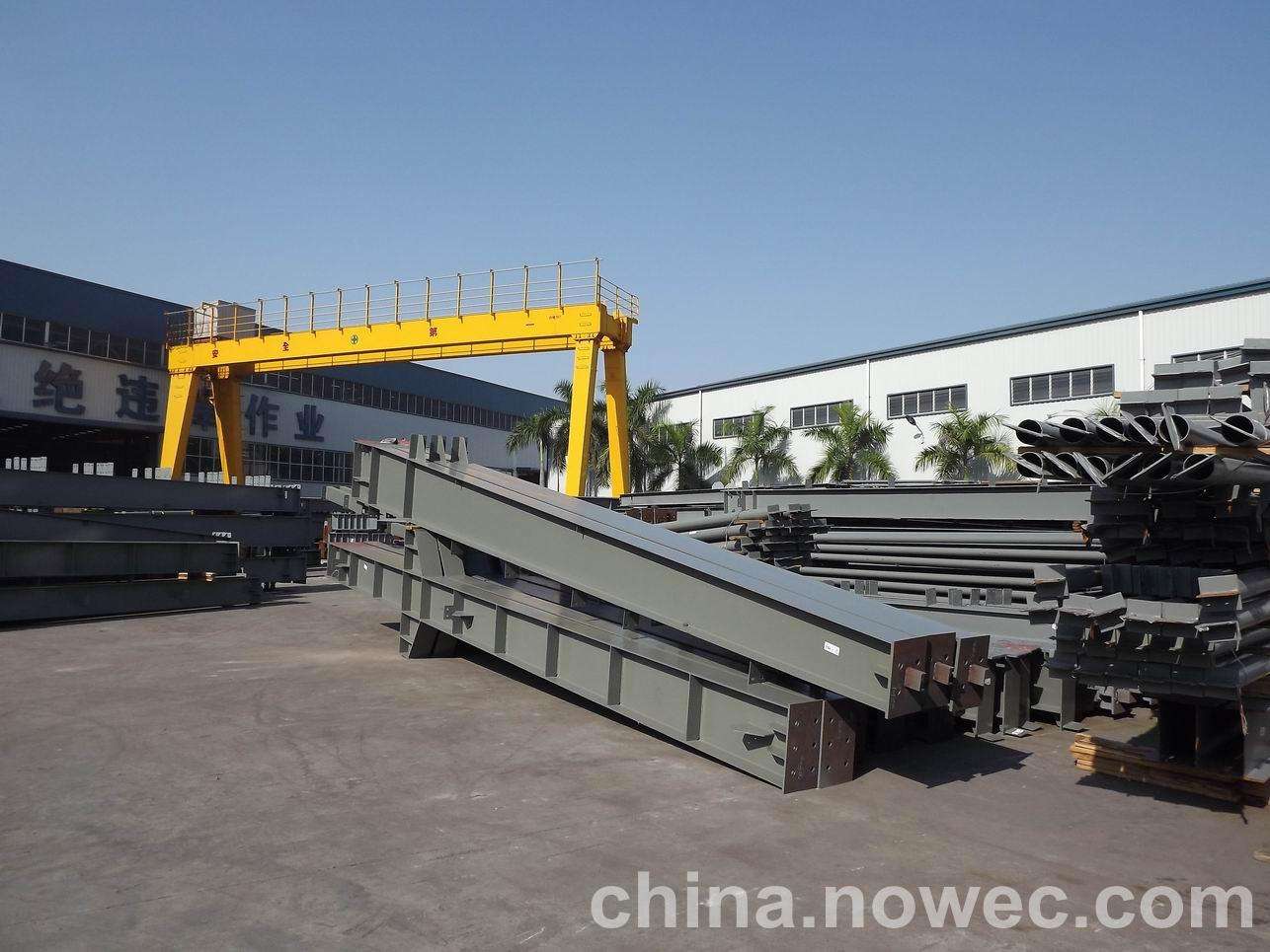 条状单元一般沿长跨方向分割,其宽度约为1~3个网格,其长度为l2或l2/2(l2为短跨跨距)。块状单元一般沿三明网架平面纵横向分割成矩形或正方形单元。每个单元的重量以现有起重机能胜任为准。条(块)与条(块)之间可以直接拼装,也可空一网格在高空拼装。由于条(块)状单元是在地面拼装,因而高空作业量较高空散装法大为减少,拼装支架也减少很多,又能充分利用现有起重设备,故较经济。这种安装方法适用于分割后网架的钢度和受力状况改变较小的各类中小型网架,如两向正交正放四角锥、正放抽空四角锥等网架。